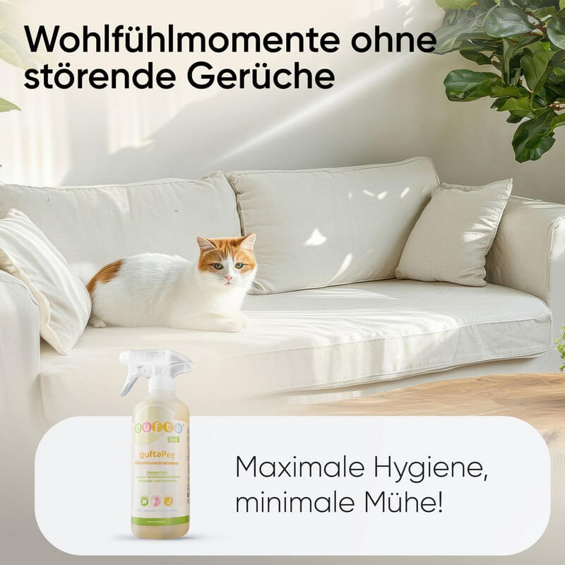 Ja, das geht: DuftaPet Geruchsneutralisierer neutralisiert selbst hartnäckige Gerüche von Katzen, Hunden, Nagetieren usw. zuverlässig. Das Spray ist dabei ganz einfach in der Anwendung.